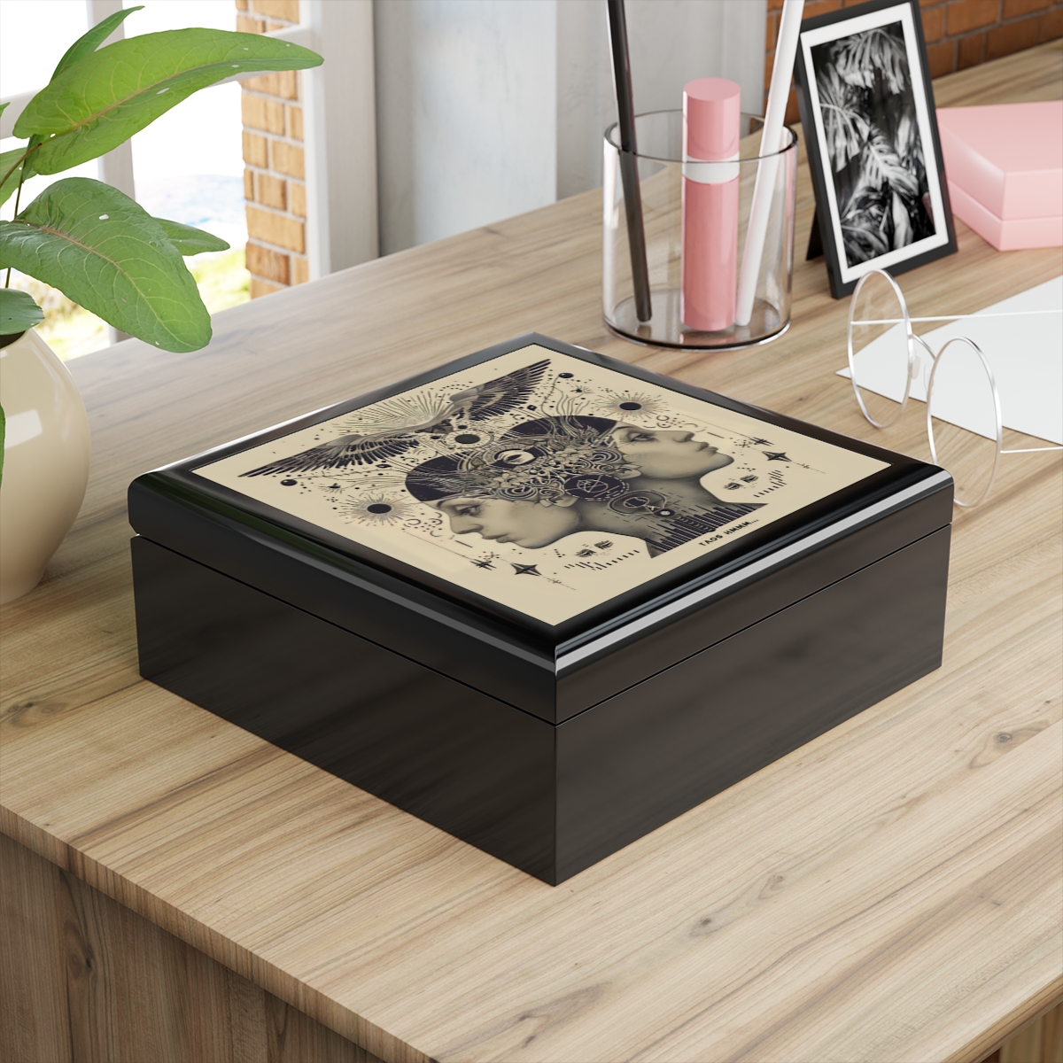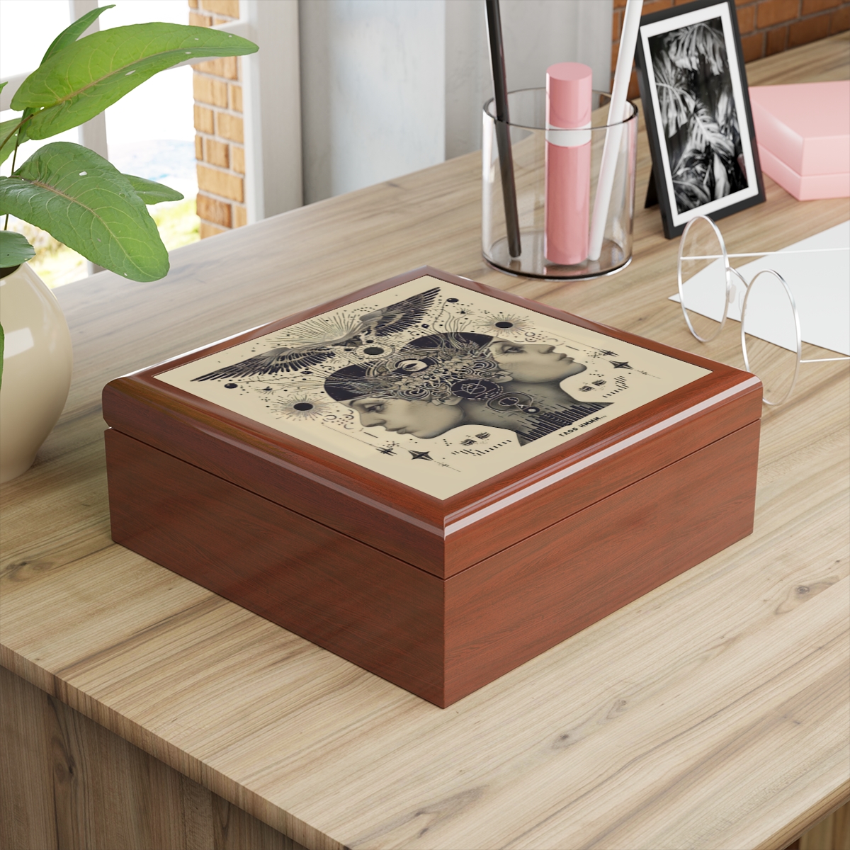 – 6″ x 6″ (15cm x 15cm) decorated glossy sublimation ceramic tile fitted on top of the lid